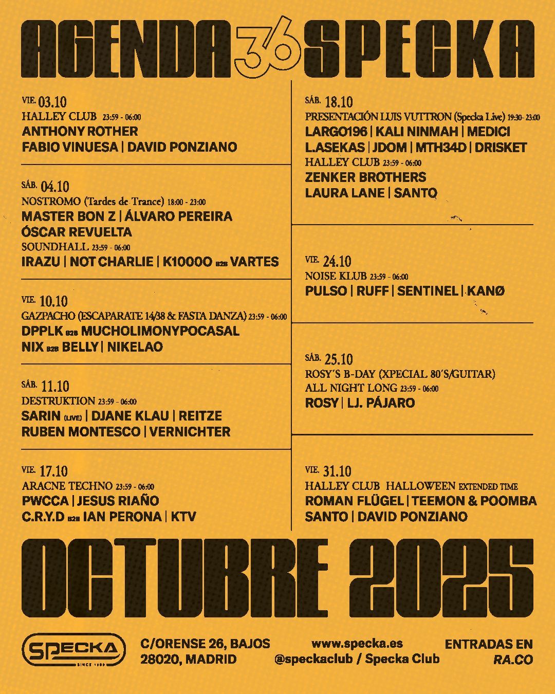 SPECKA is one of the main pillars of club culture in Madrid City.